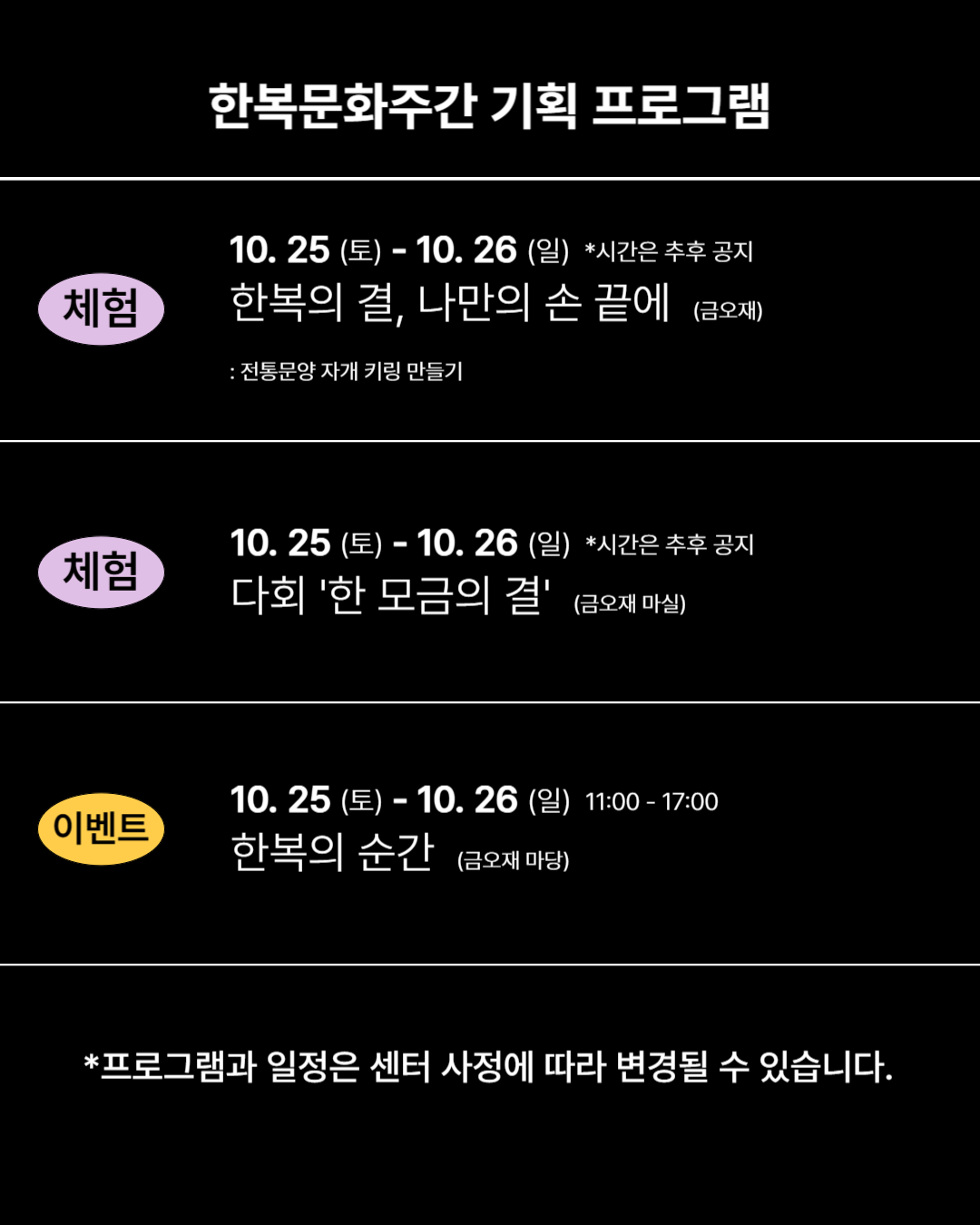 📆서울생활문화센터 체부 10월 프로그램 안내