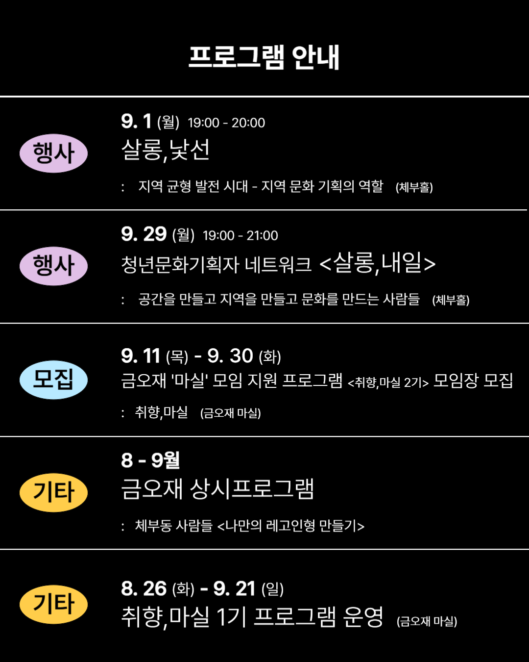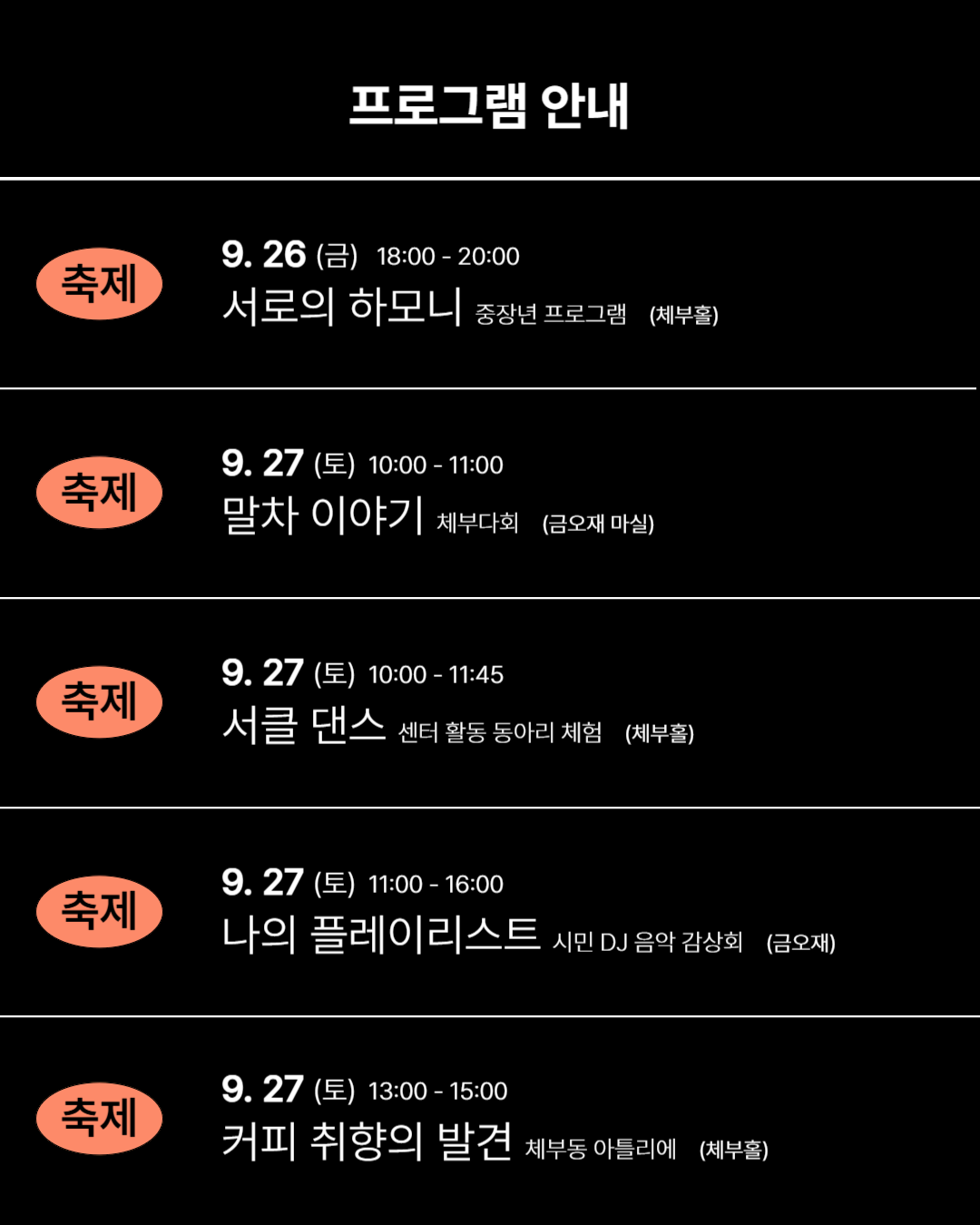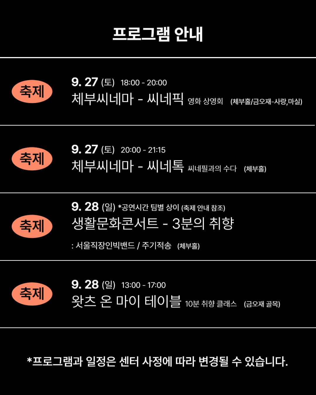 📆서울생활문화센터 체부 9월 프로그램 안내