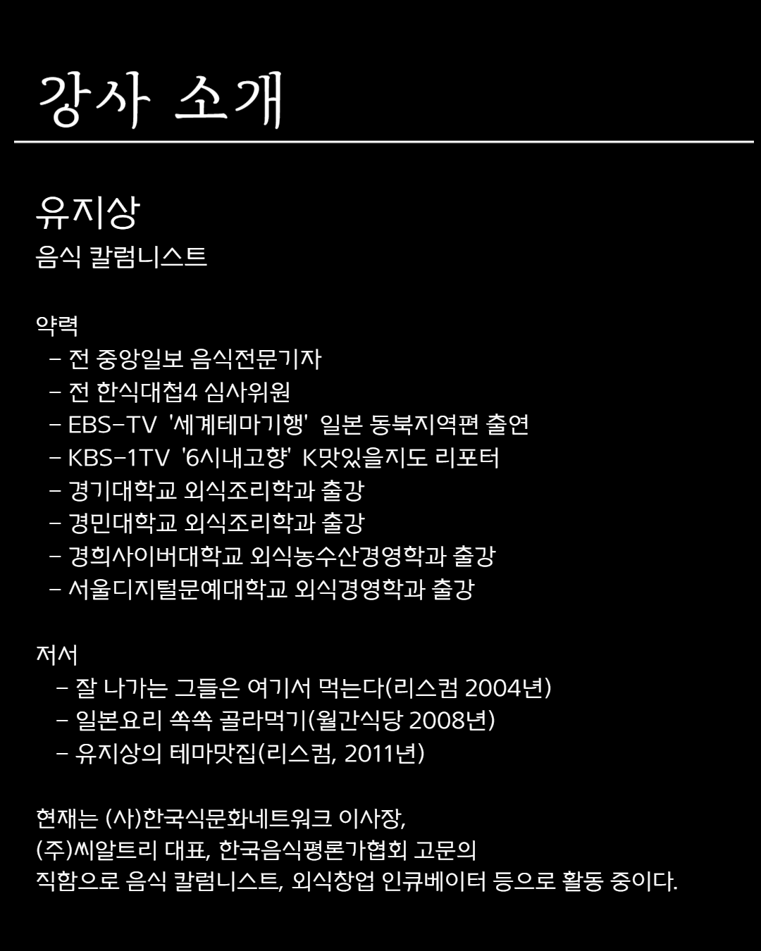 음식칼럼니스트 유지상 초청 강연