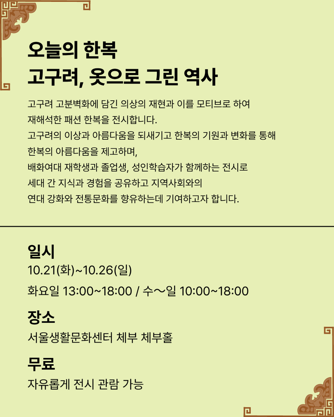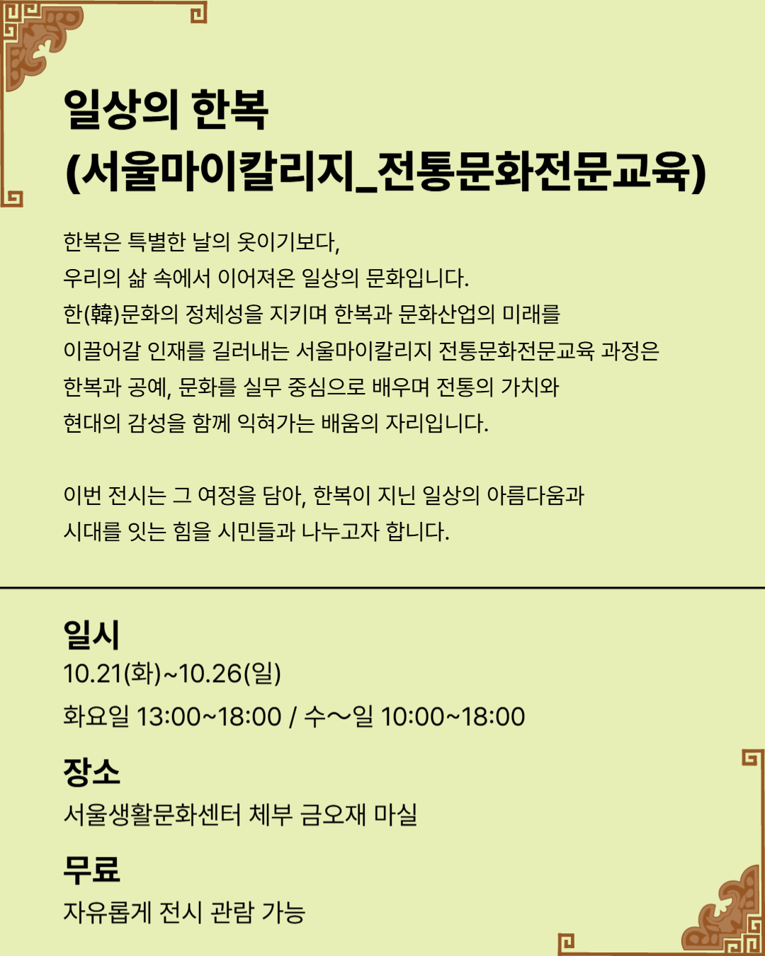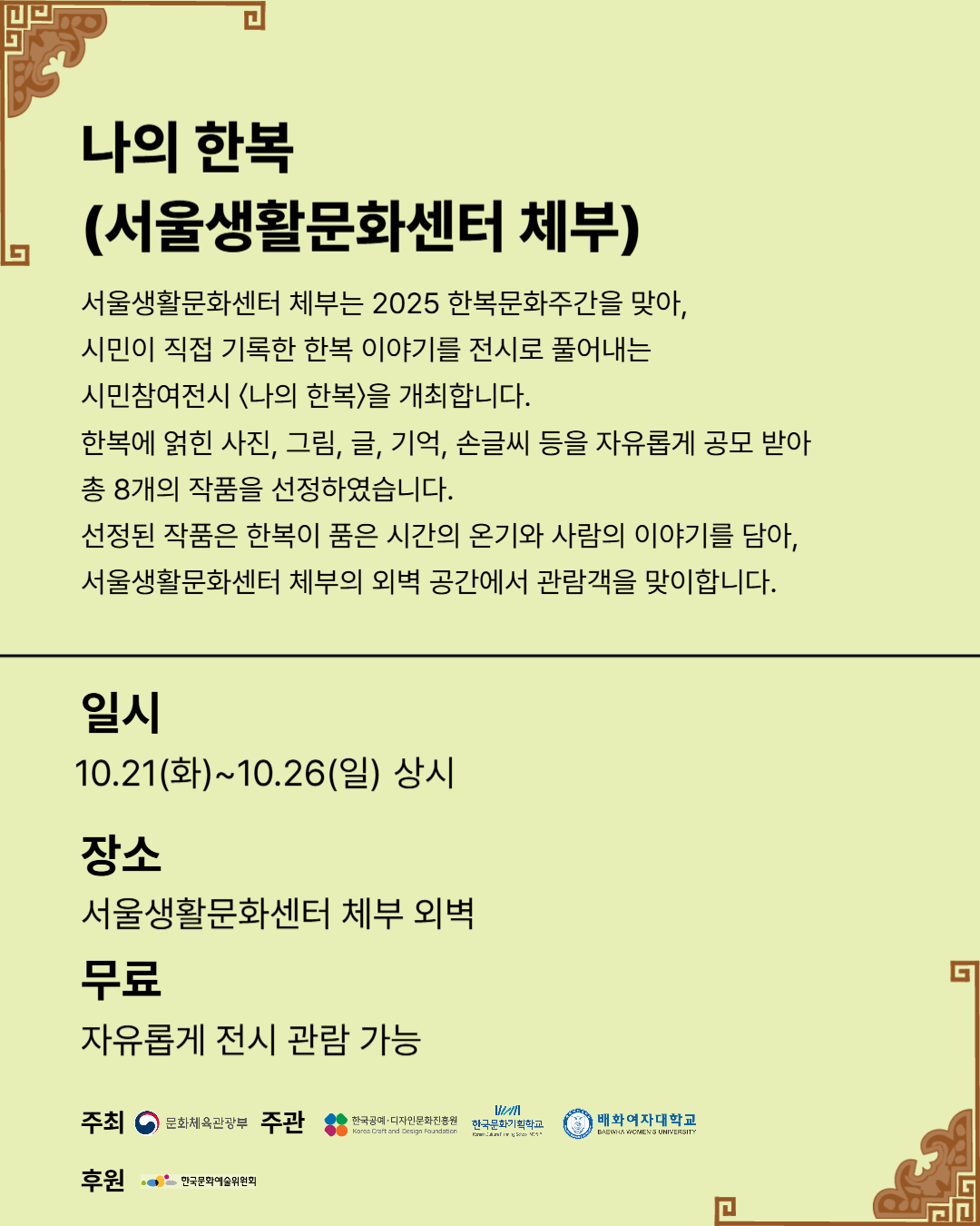 📍 장소 서울생활문화센터 체부 체부홀 / 금오재 마실 / 센터 외벽