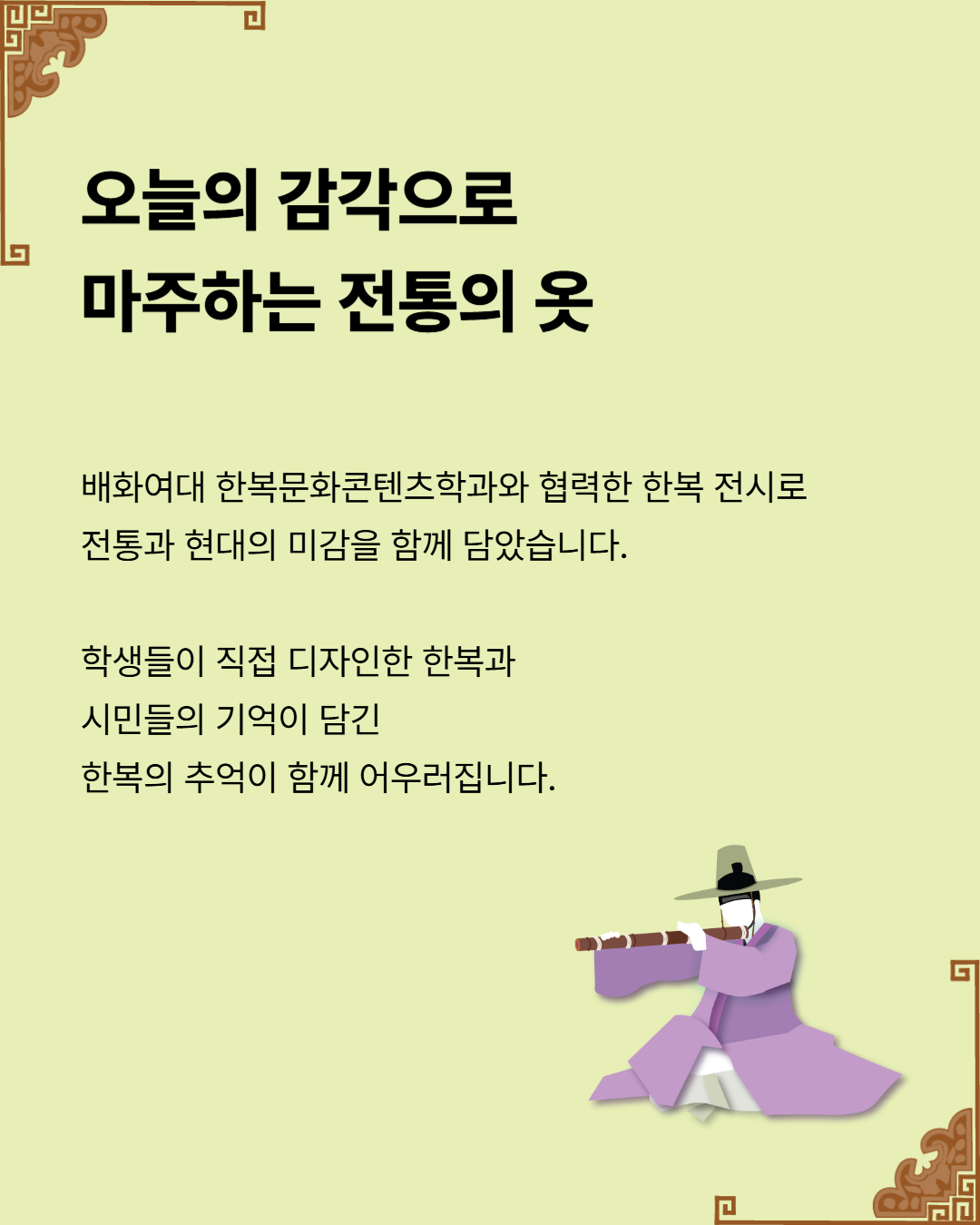 배화여대 한복문화콘텐츠학과와 협력한 한복 전시로